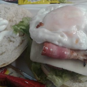 Hamburguesa de pollo con huevo